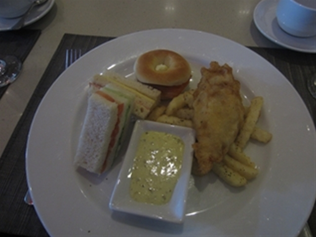 フィッシュ&チップスなるものとベーグルにサンドイッチってところかな?